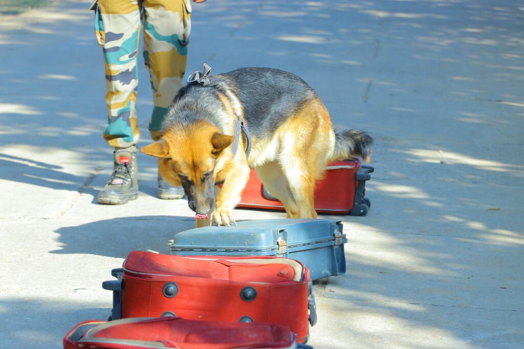 In airports and border zones, canine units sniff out narcotics, explosives, and smuggled contraband, working swiftly and precisely under high-stakes conditions. In war zones, dogs are often deployed to detect IEDs, saving countless lives through their silent, focused work.